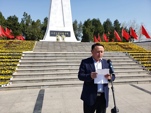公司黨委書記徐向峰代表公司向英勇的革命烈士們敬獻(xiàn)了花籃,同時(shí)發(fā)表了講話。他說這八十二位烈士是為淮陰人民而戰(zhàn),是為祖國(guó)而戰(zhàn),他們是無(wú)數(shù)抗日先烈的一部分,我們要深切緬懷所有的為國(guó)犧牲的革命先烈!現(xiàn)如今,在以習(xí)近平同志為核心的黨中央的帶領(lǐng)下,在習(xí)近平新時(shí)代中國(guó)特色社會(huì)主義思想引領(lǐng)下,中國(guó)特色社會(huì)主義進(jìn)入了新時(shí)代,作為新時(shí)代的共產(chǎn)黨員,我們要繼續(xù)傳承先烈遺志,宏揚(yáng)他們不畏艱難、不怕犧牲、英勇頑強(qiáng)的革命精神,服從大局、心中無(wú)我的擔(dān)當(dāng)精神。徐書記號(hào)召大家要加強(qiáng)自我修煉,全面提高自我,事事有擔(dān)當(dāng)、能擔(dān)當(dāng)、會(huì)擔(dān)當(dāng),盡顯先鋒模范的帶頭作用,帶領(lǐng)一代一代水建人,為淮陰水建更加美好的明天而努力奮斗。